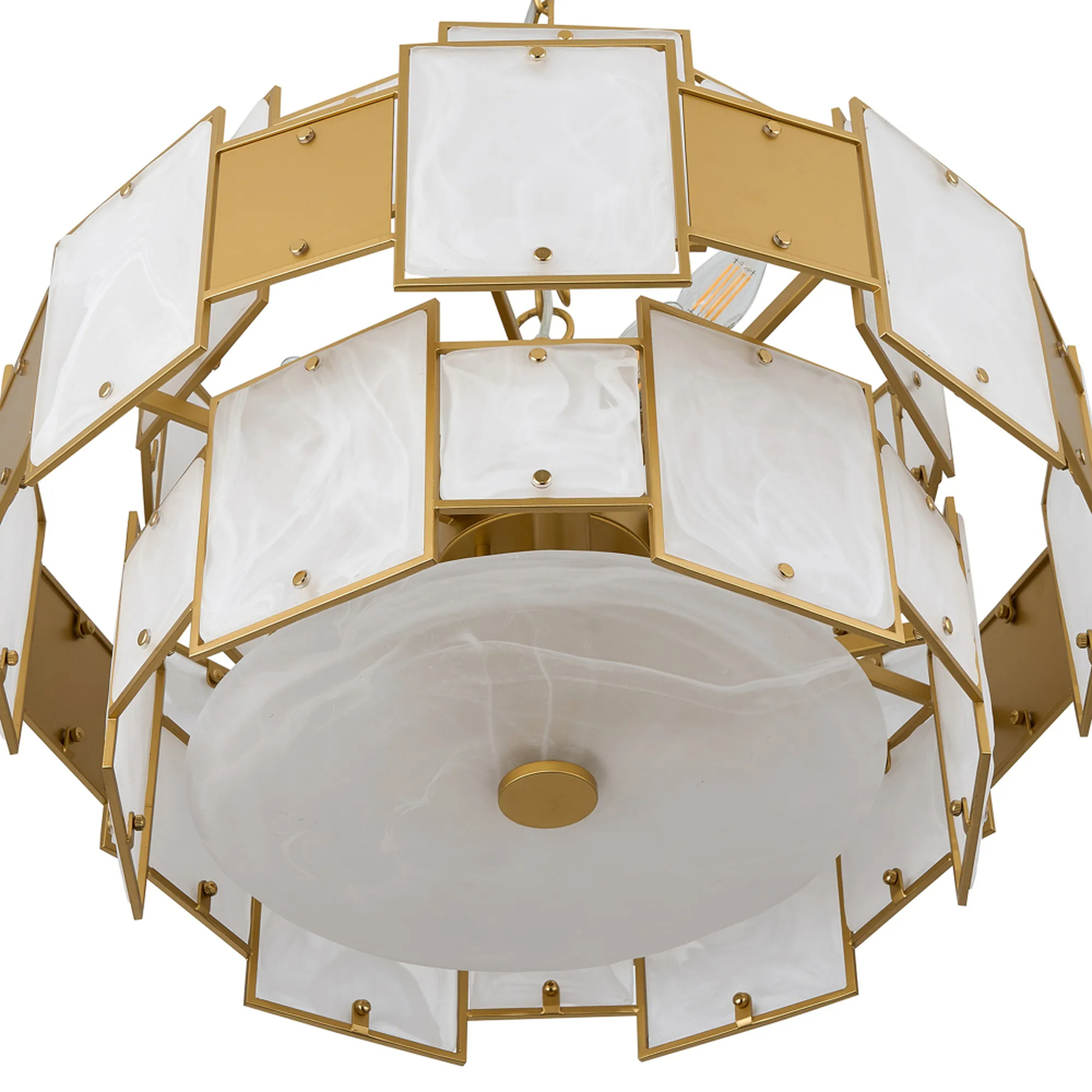 Idolite Natron 59cm Round Pendant/Semi Flush White Glass Alabaster & Metal: 12 x E14: 1.5m Chain: Gold/White Frosted | IDOOG/RF/OG2495