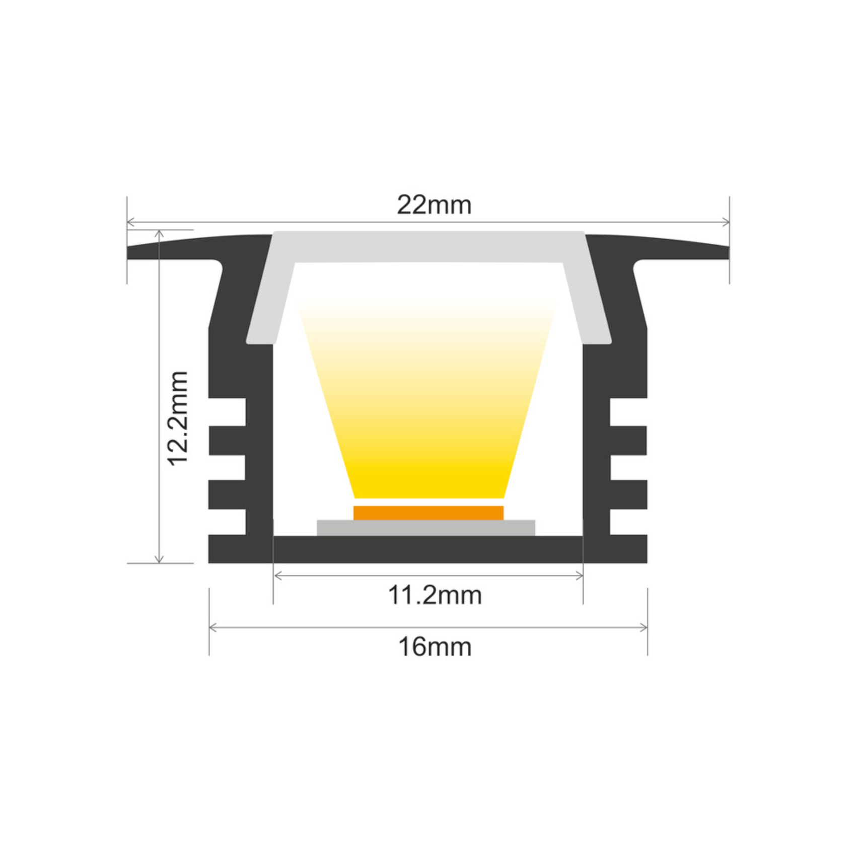 This 1M Recessed Aluminium Profile (also known as Extrusion) is designed for any Integral IP33 and IP65 Flexible LED Strip range with 8mm and 10mm width. A clear diffuser (cover) is included. Suitable for applications such as furniture lighting, counter lighting, ceiling decorating light etc. Accessories including endcaps, endcaps with cable entry and mounting bracket (clips) are available to purchase separately.