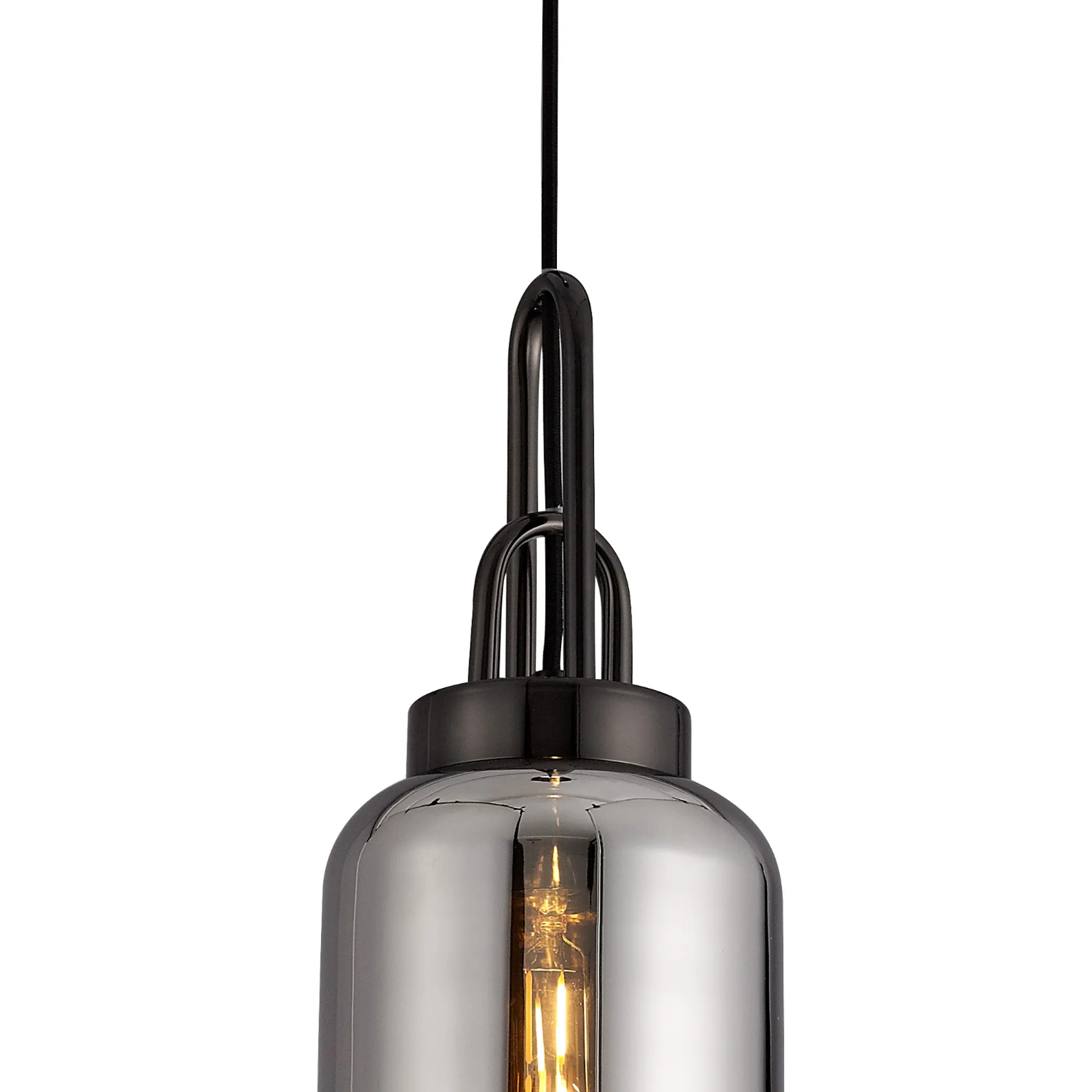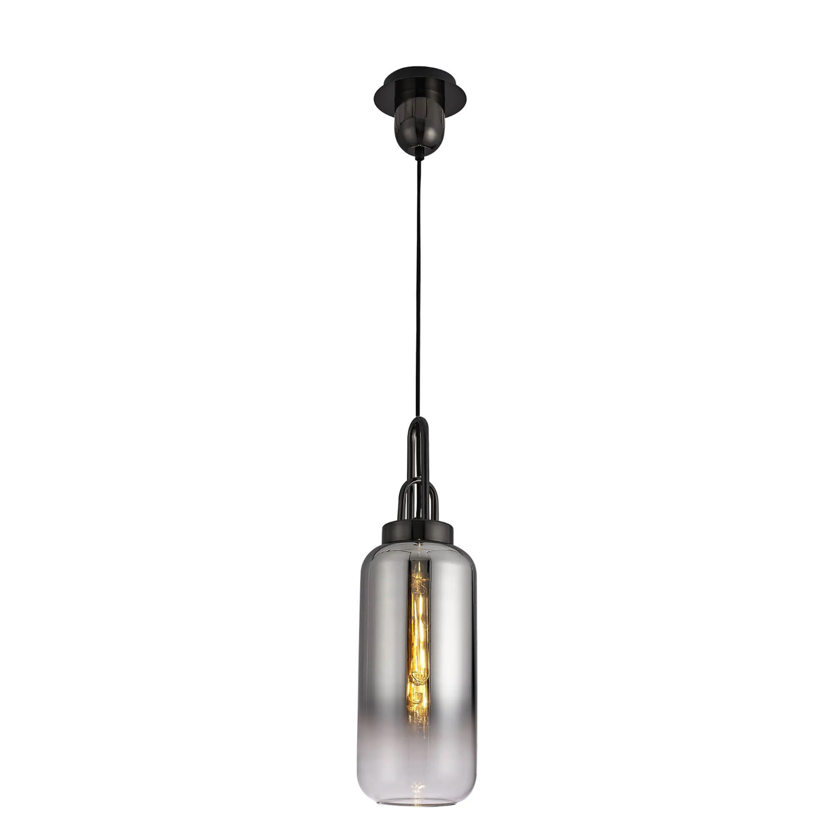 Idolite Camille 1 Light Pendant E27 With 16cm Cylinder Glass, Black Chrome/Matt Black/Smoked/Clear | IDOK1530