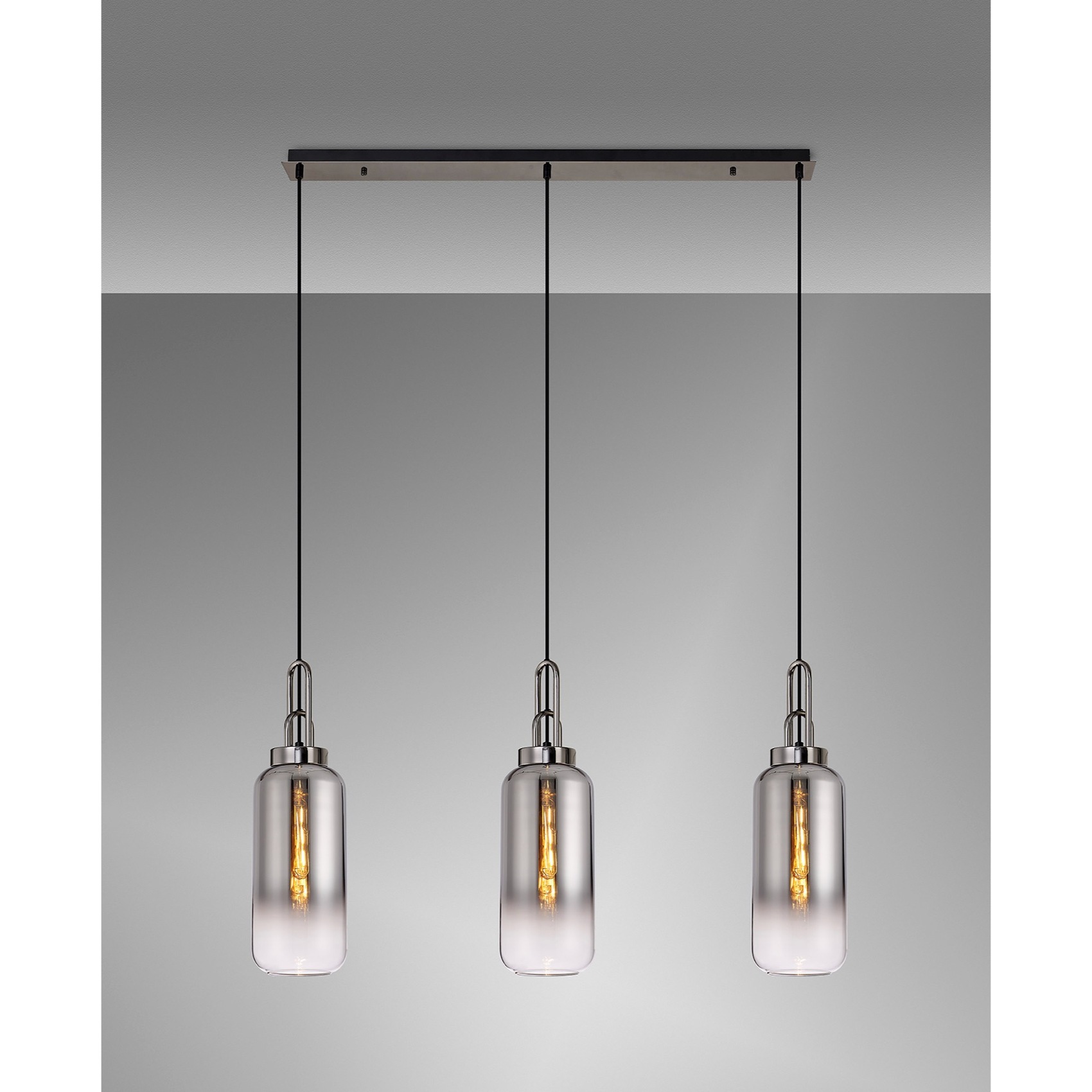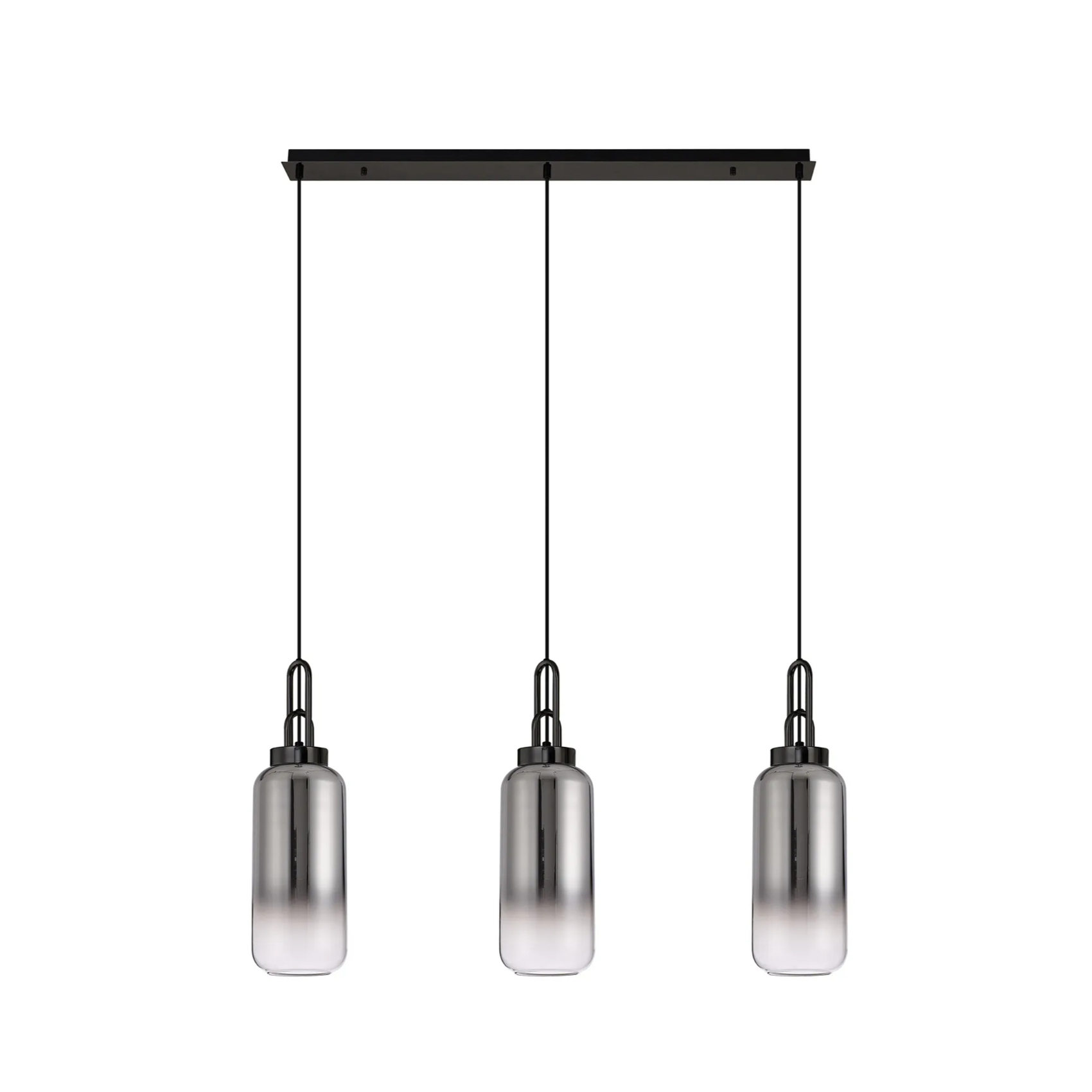 Idolite Camille Linear 3 Light Pendant E27 With 16cm Cylinder Glass, Smoked/Clear Black Chrome/Matt Black | IDOK2260