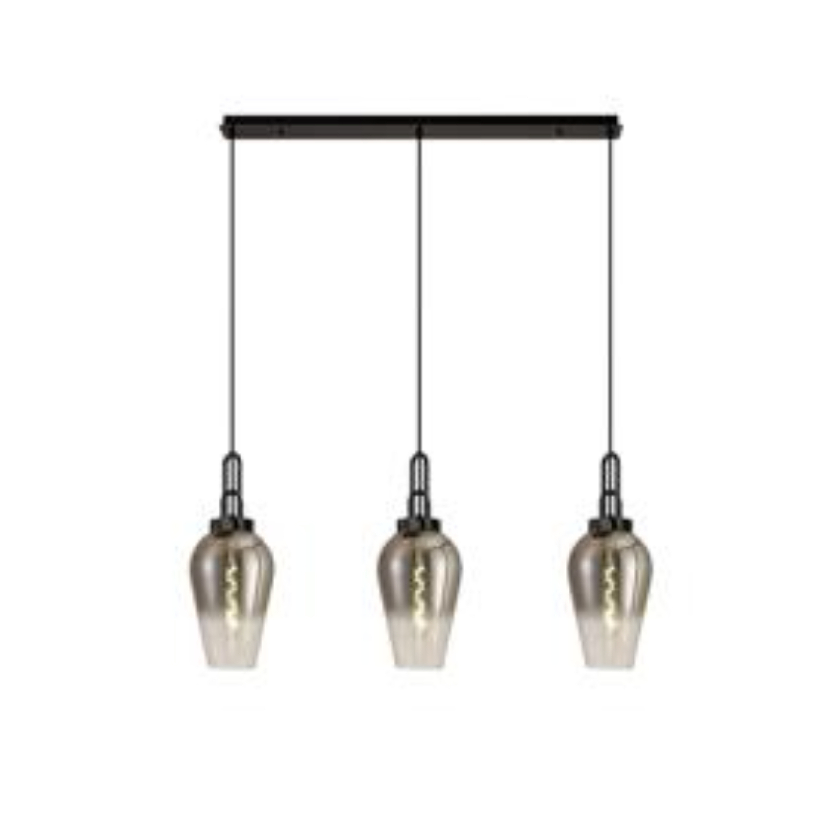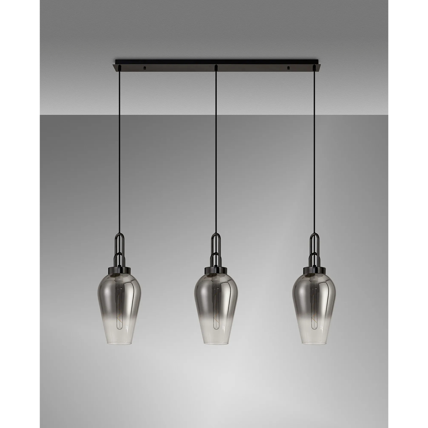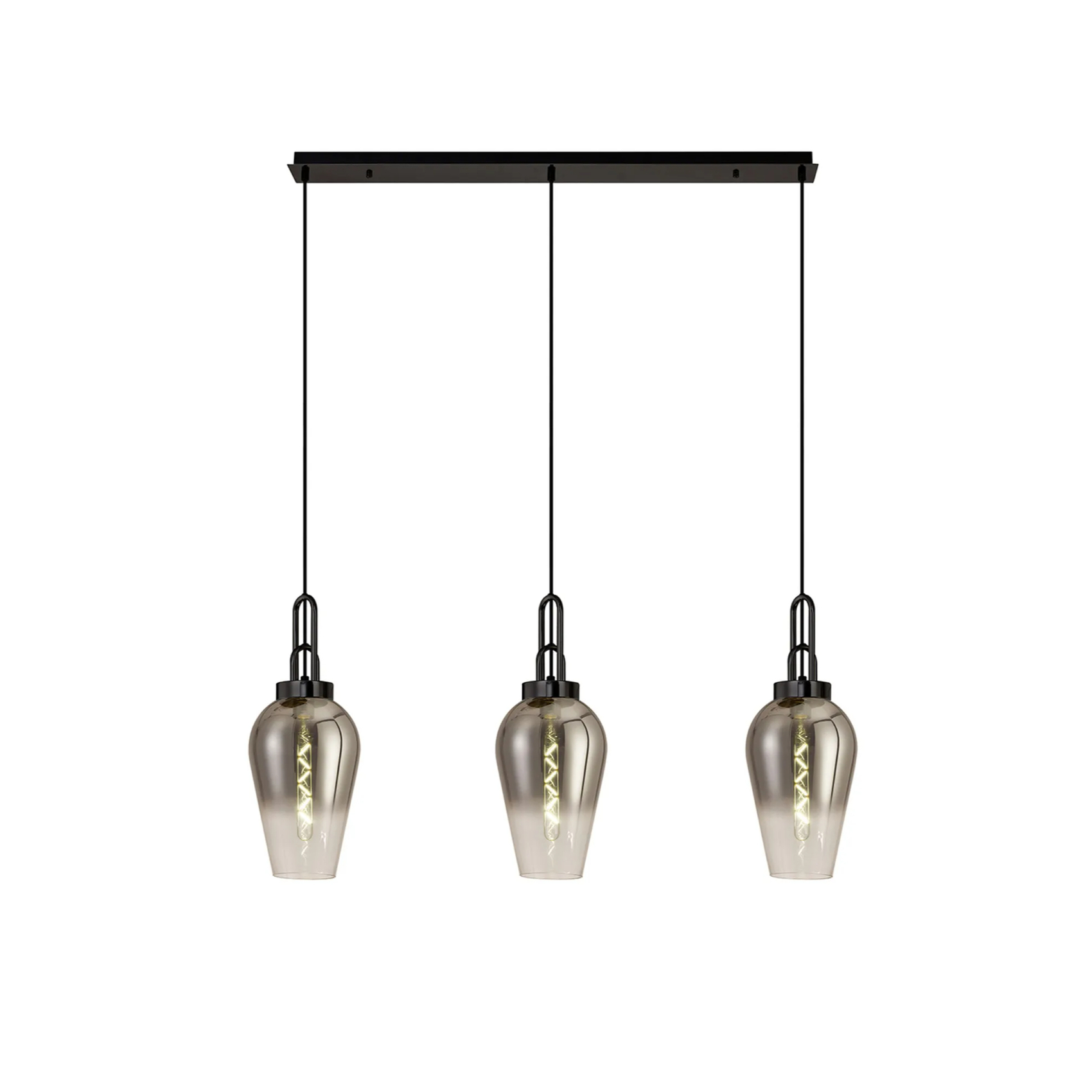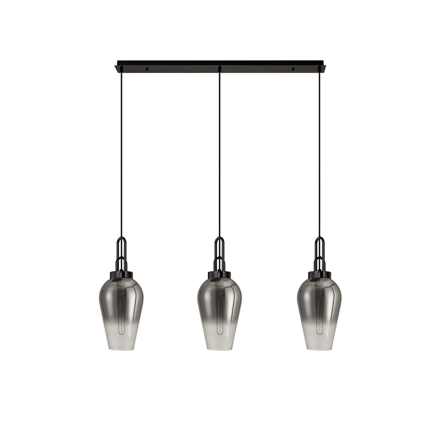 Idolite Camille Linear 3 Light Pendant E27 With 23cm Pear Glass, Smoked/Clear Black Chrome/Matt Black | IDOK0190