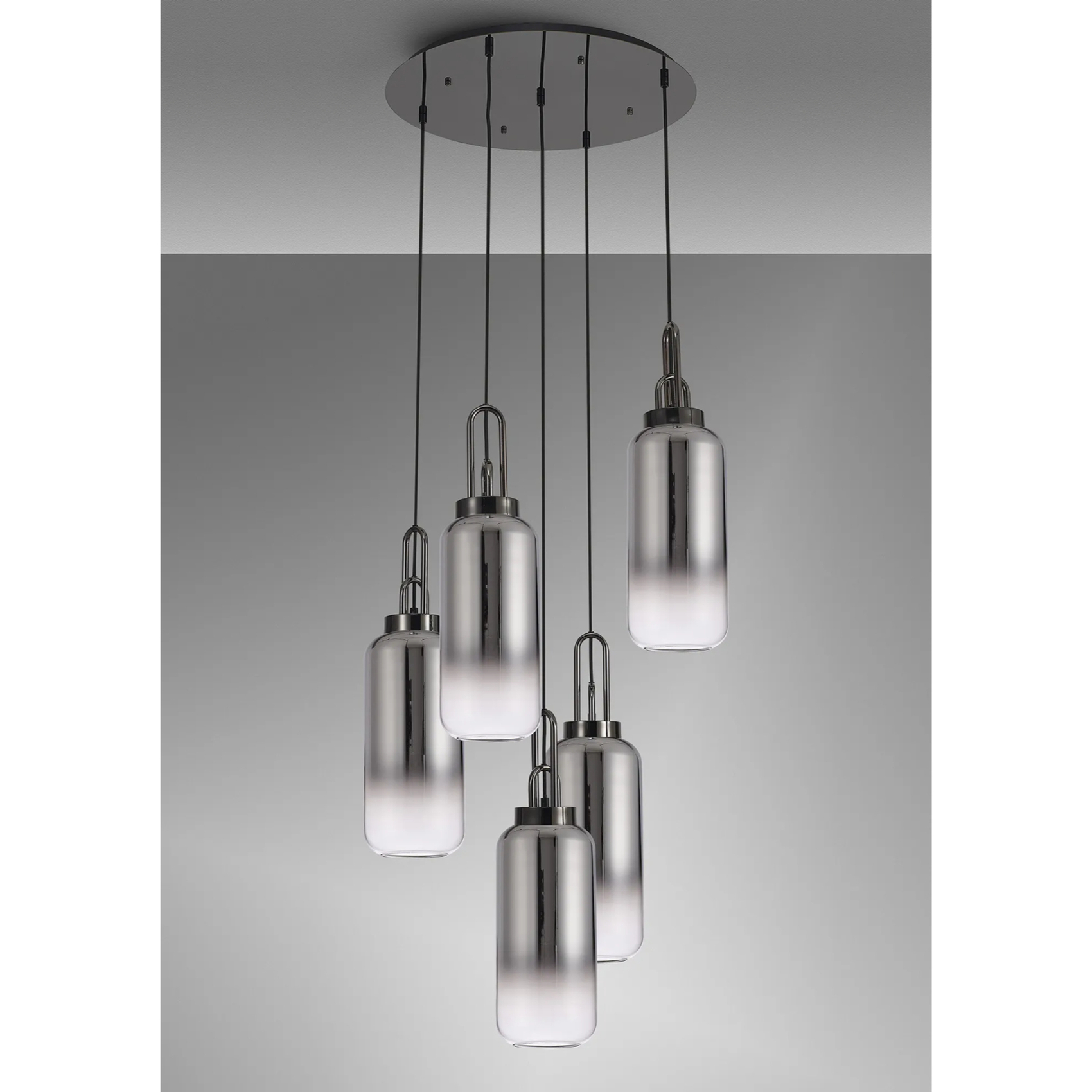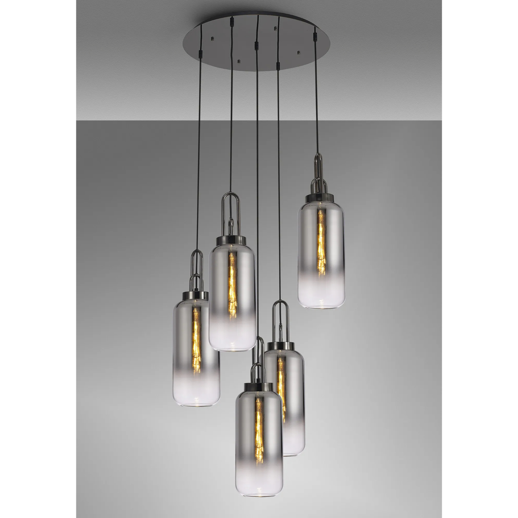 Idolite Camille Round 5 Light Pendant With 16cm Cylinder Glass, Black Chrome/Matt Black Smoked/Clear | IDOK4460