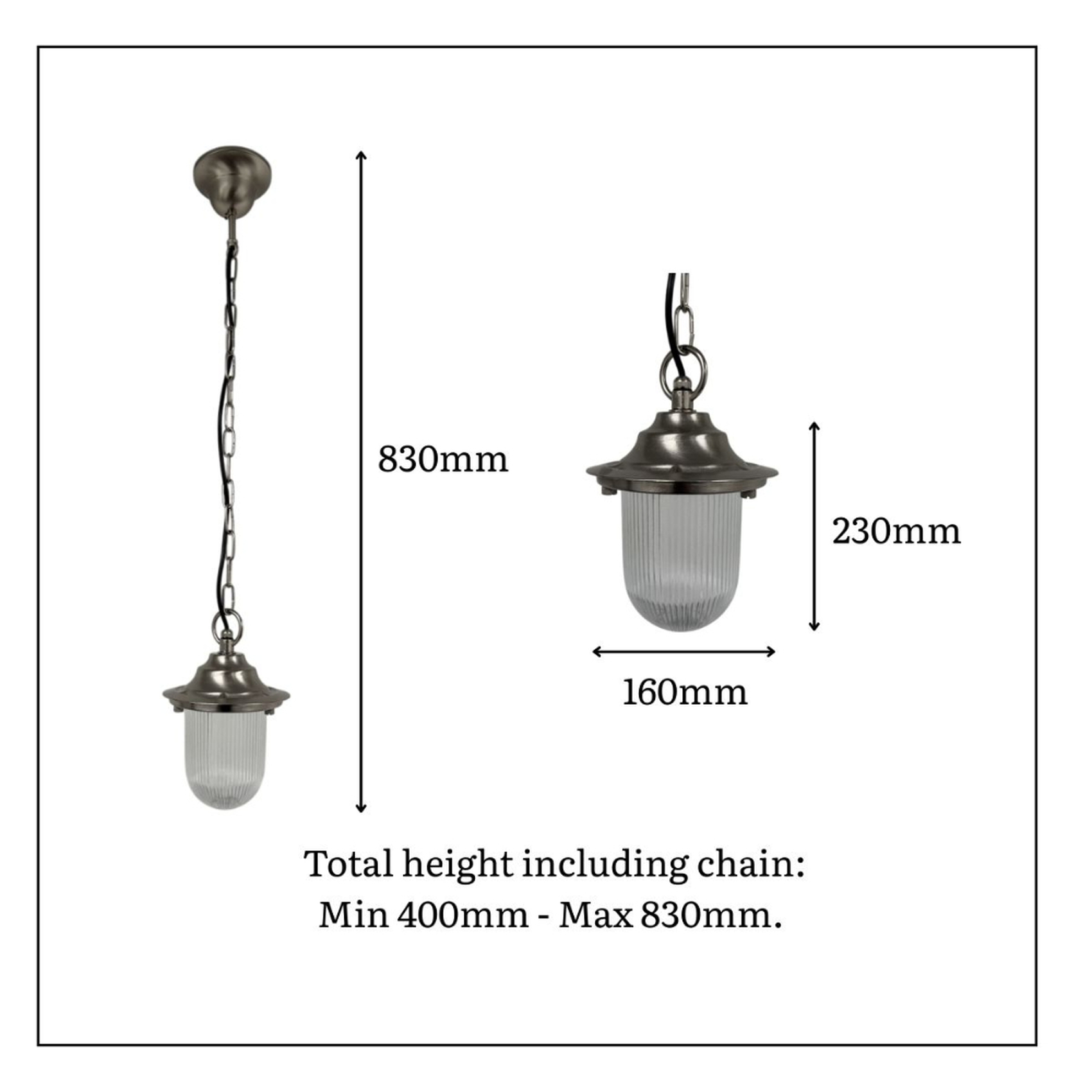 Navigator Hull Raw Brass Chain Lantern Complete With Clear Ribbed Glass - IP54, Solid Brass, Coastal | 09149