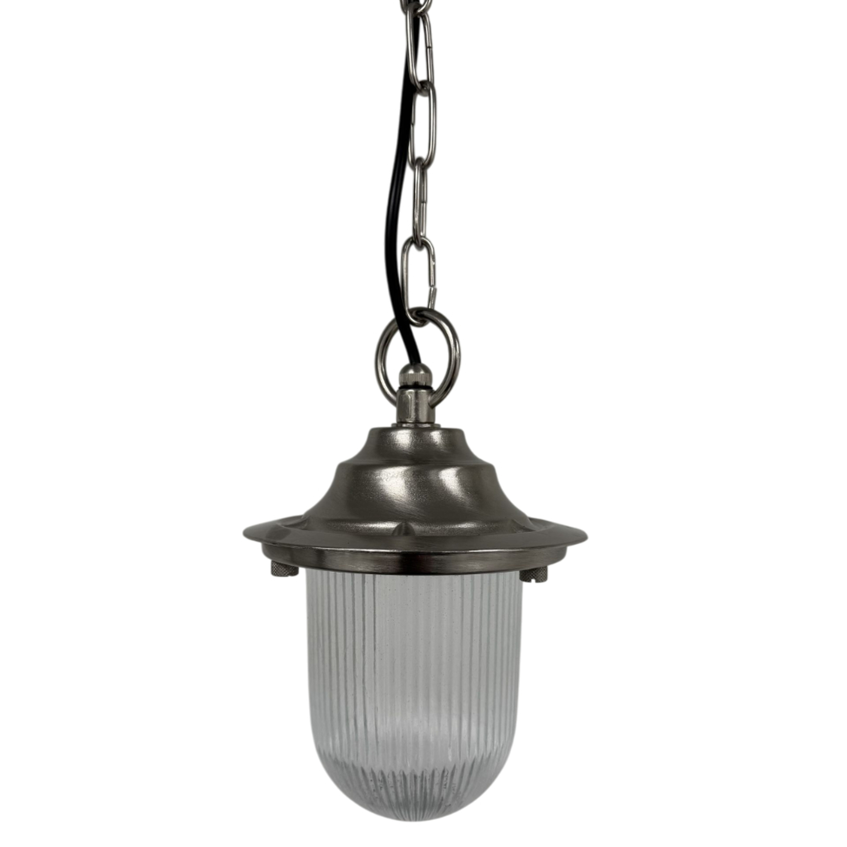 Navigator Hull Satin Nickel Chain Lantern Complete With Clear Ribbed Glass - IP54, Solid Brass, Coastal | 09151
