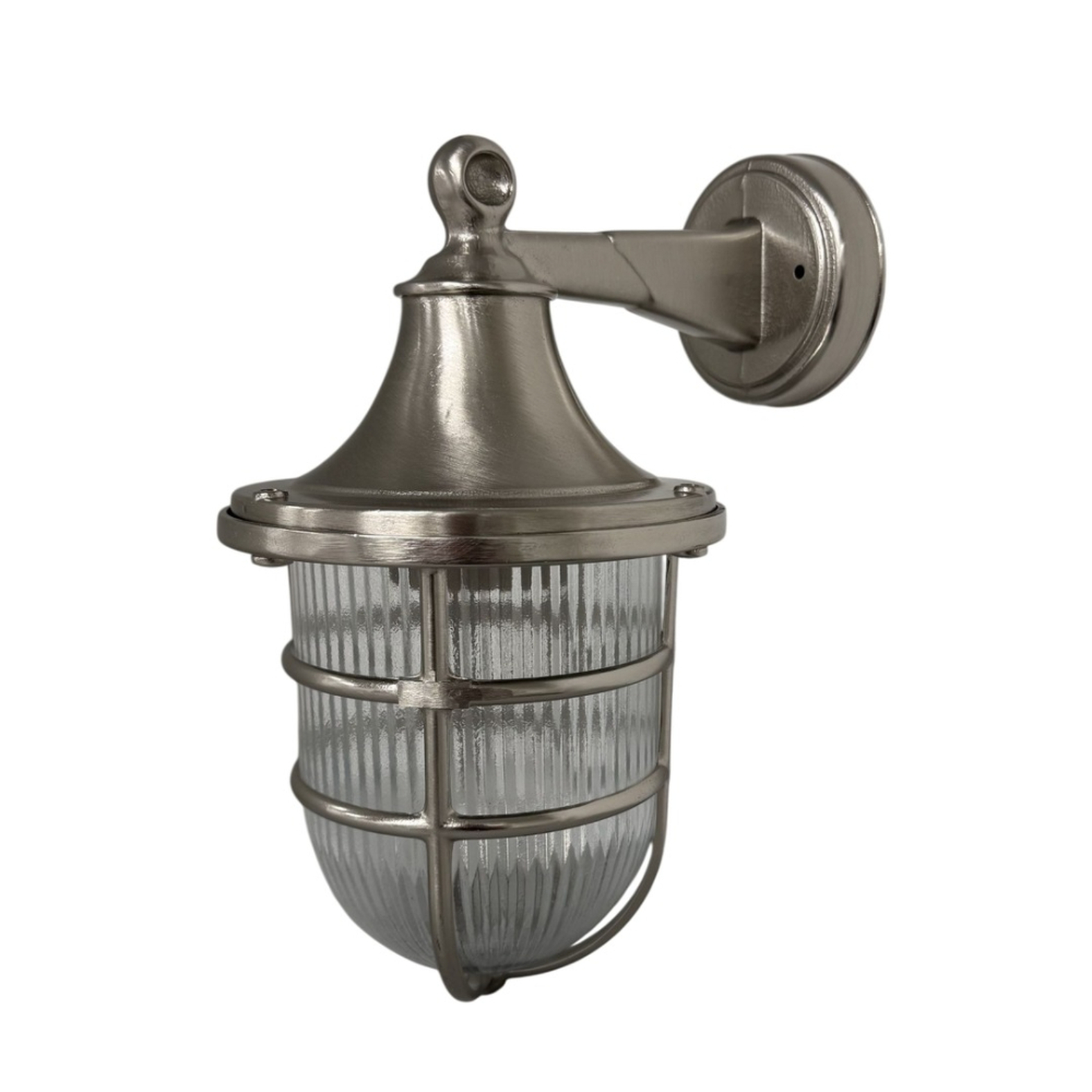 Navigator Grand Tiller Satin Nickel Downard Facing Wall Light With Clear Ribbed Glass - IP64, Solid Brass, Coastal | 09133