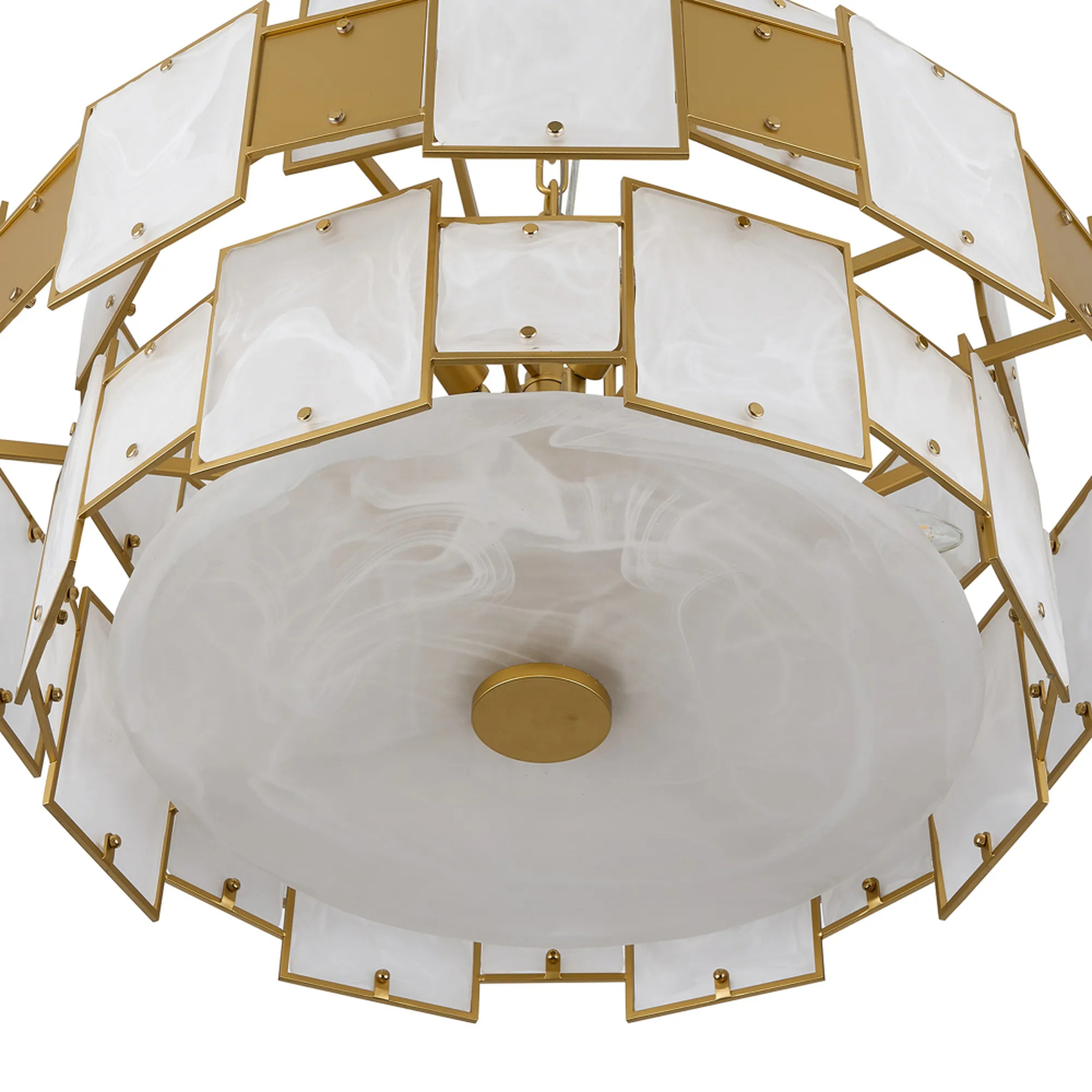 Idolite Natron 74cm Round Pendant/Semi Flush White Glass Alabaster & Metal: 17 x E14: 2m Chain: Gold/White Frosted | IDOOG/RF/OG4495