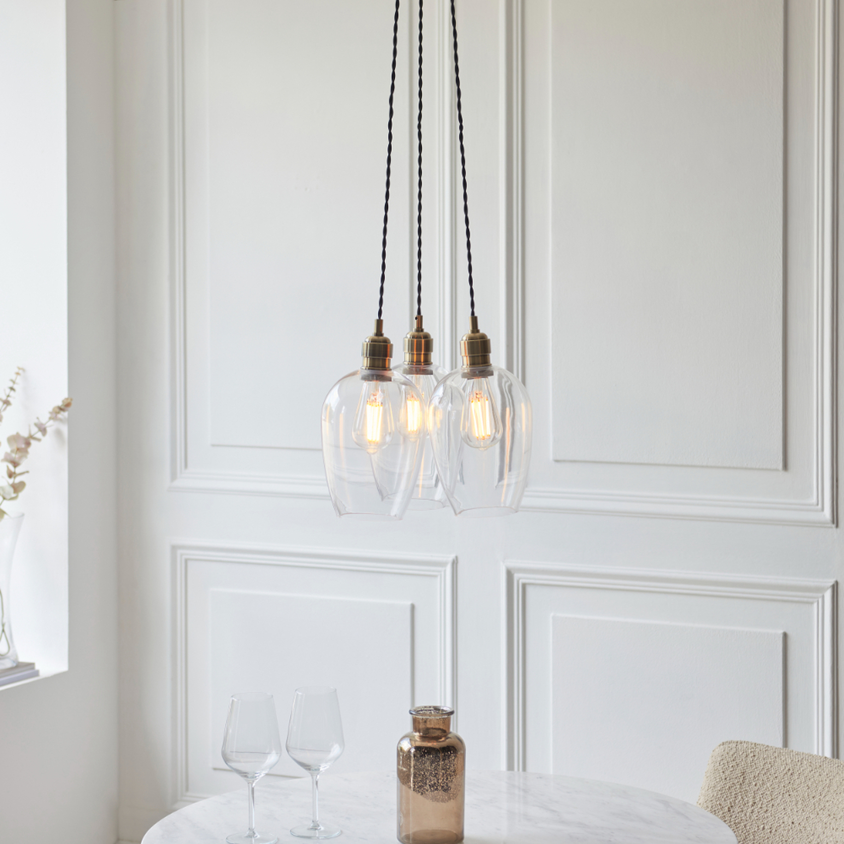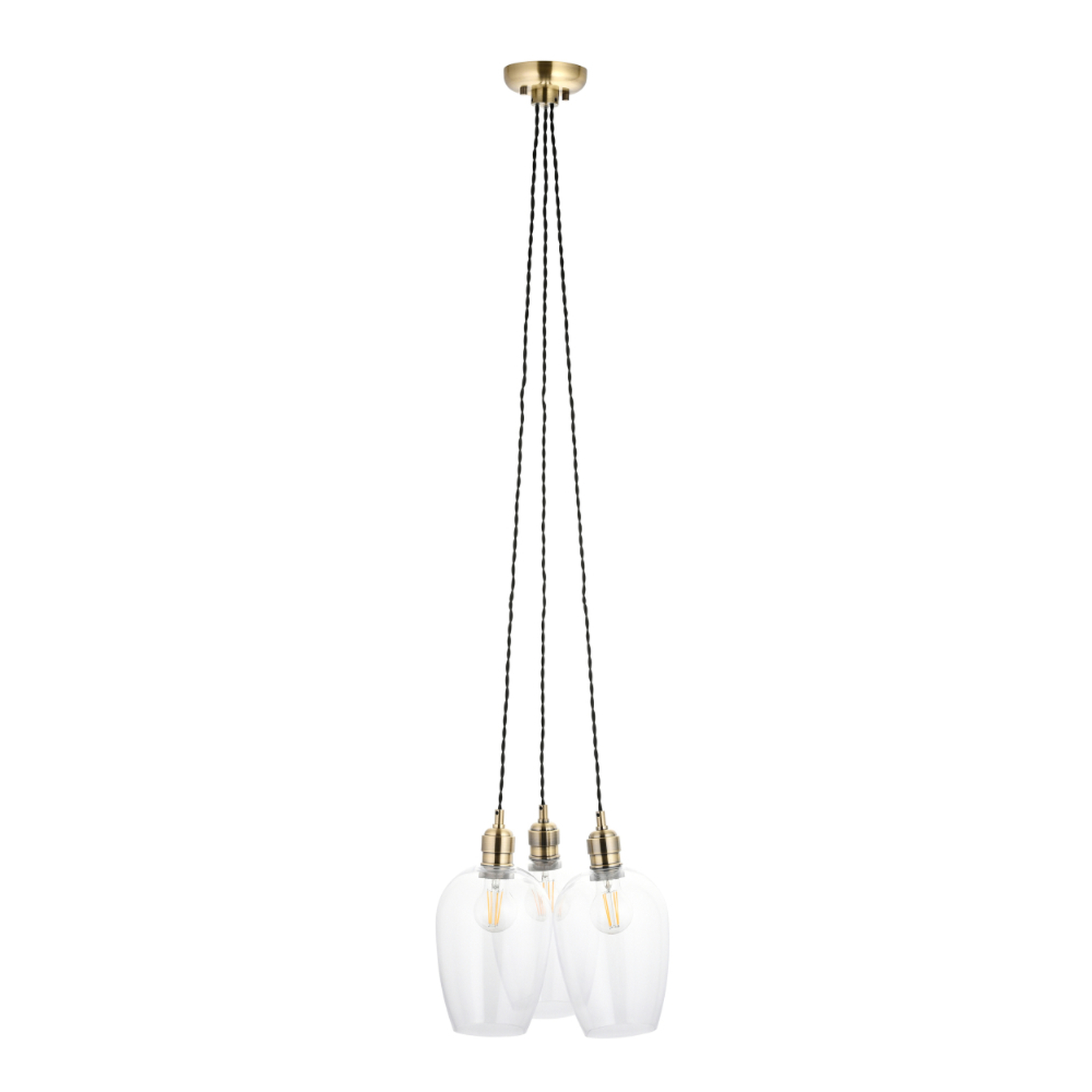 Thorlight Trentham 3 Light Antique Brass Cluster Pendant Light Complete With Clear Glass | 120648