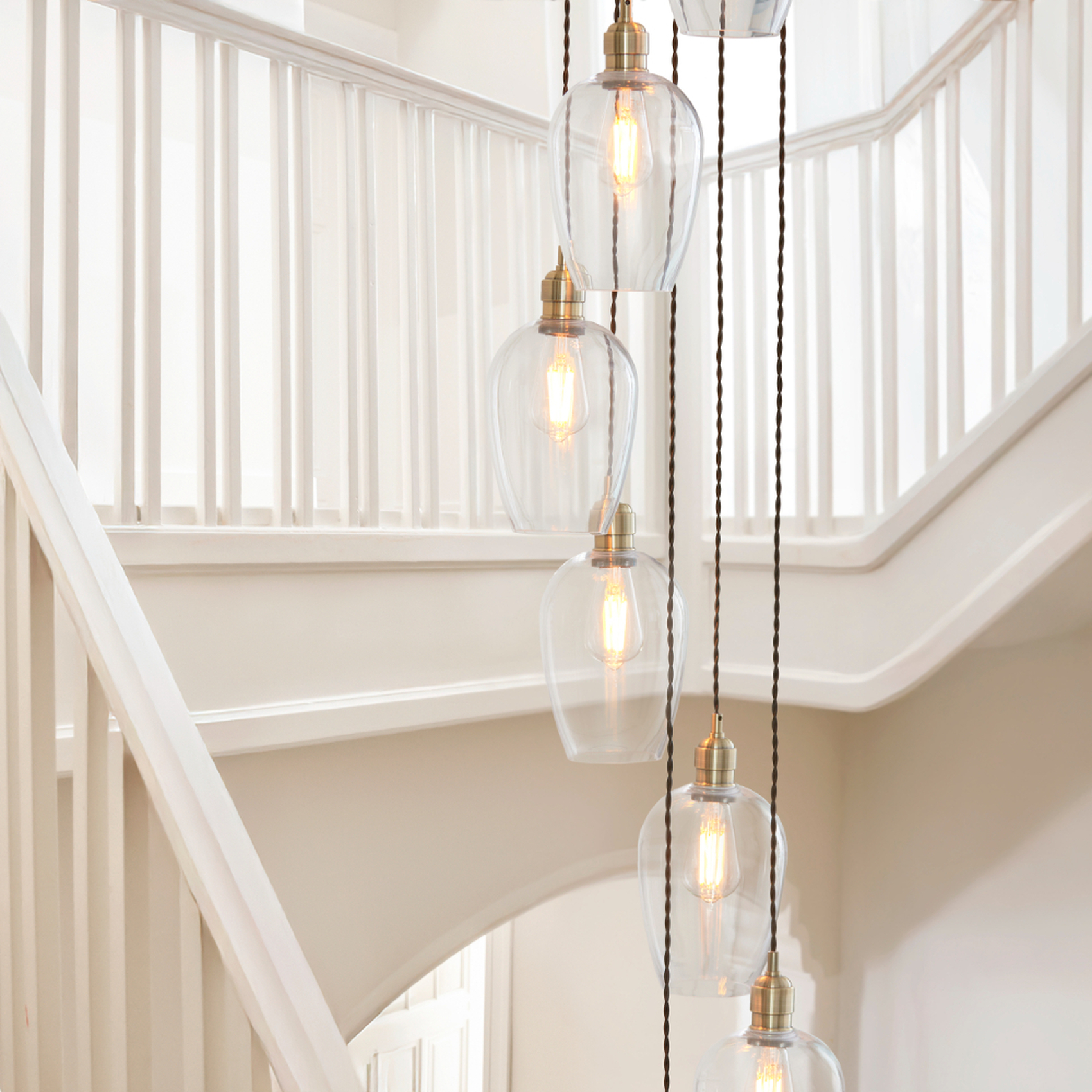 Thorlight Trentham Large 13 Light Antique Brass Stairway Cascade Light Complete With Clear Glass Shades | 120645