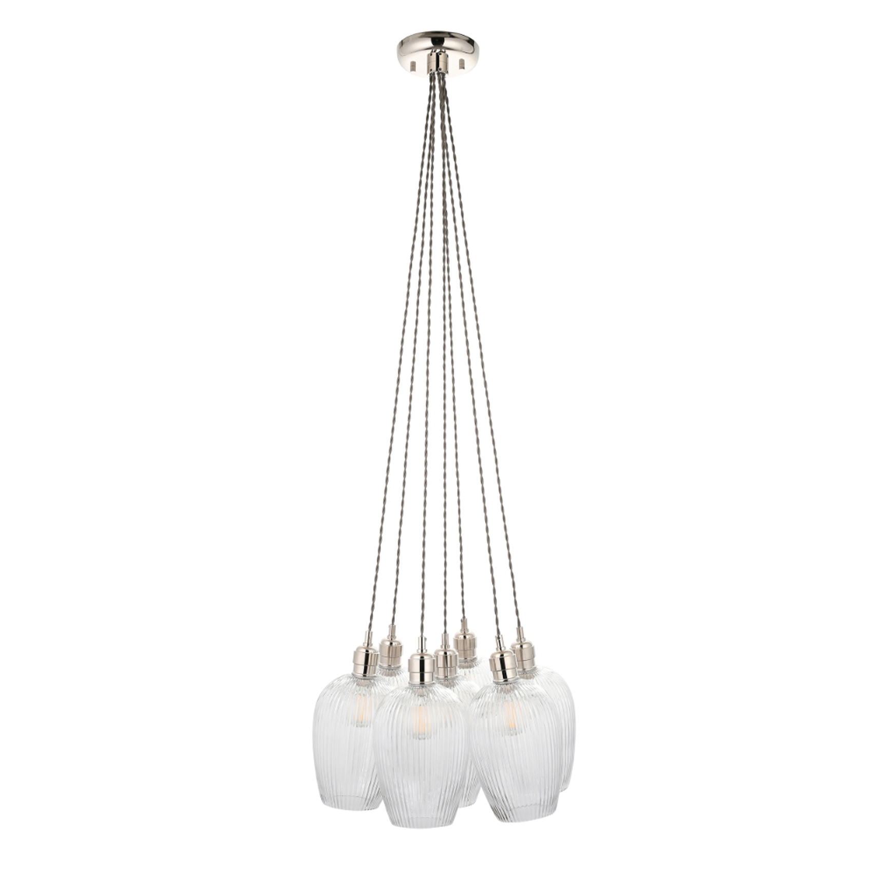 Thorlight Trentham Large 7 Light Polished Nickel Stairway Cluster Light Complete With Clear Ribbed Glass Shades | 120651
