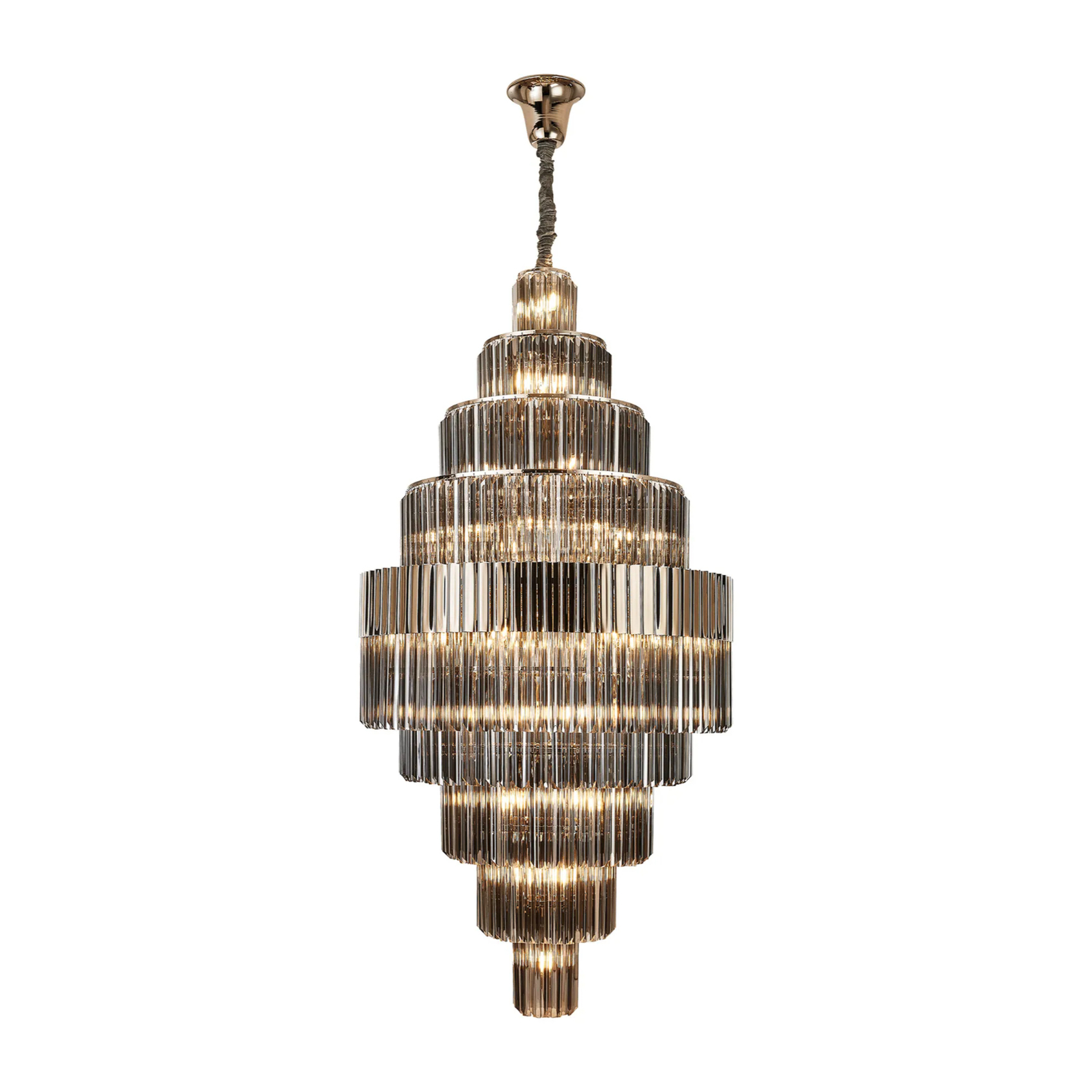 Idolote Carpathian 90cm 9 Tier Extra Large Diamond Round Glass 9 Tier Pendant Light in Polished Nickel Complete With Clear Smoked Glass | IDOMS/NP6395