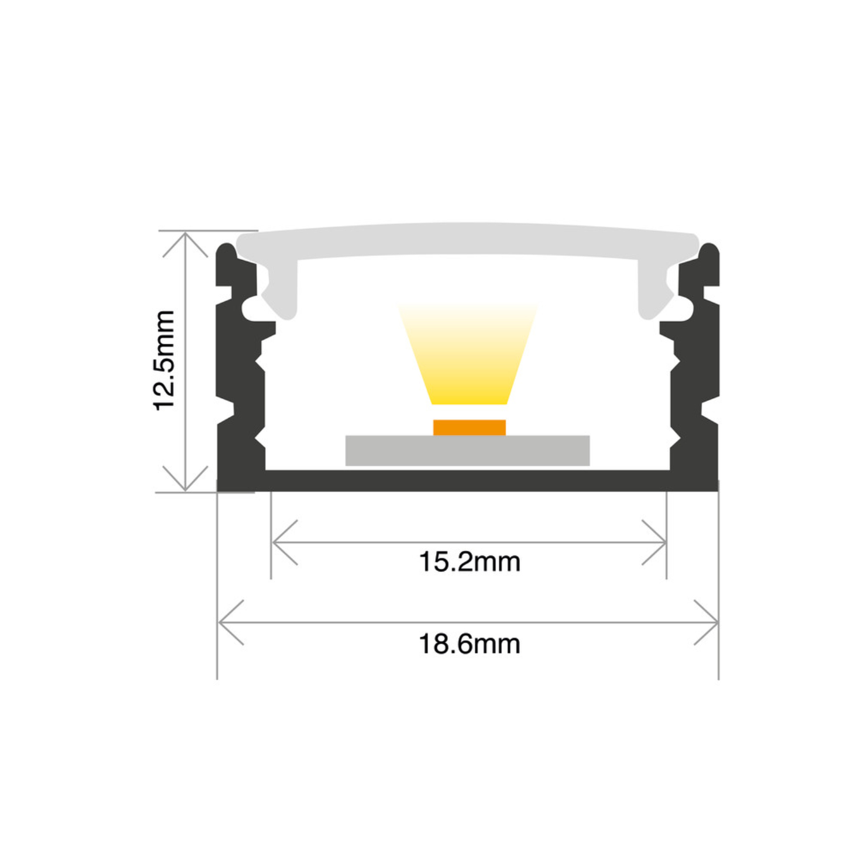 Aluminium LED Strip Profile Surface Mount 1M With Clear Diffuser 18.6 X 12.5MM For Max 14MM Width Strip | ILPFS040